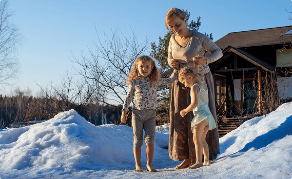 - Хождение босиком (дома — обычное дело для всех; на улице, в том числе и по снегу — по желанию);