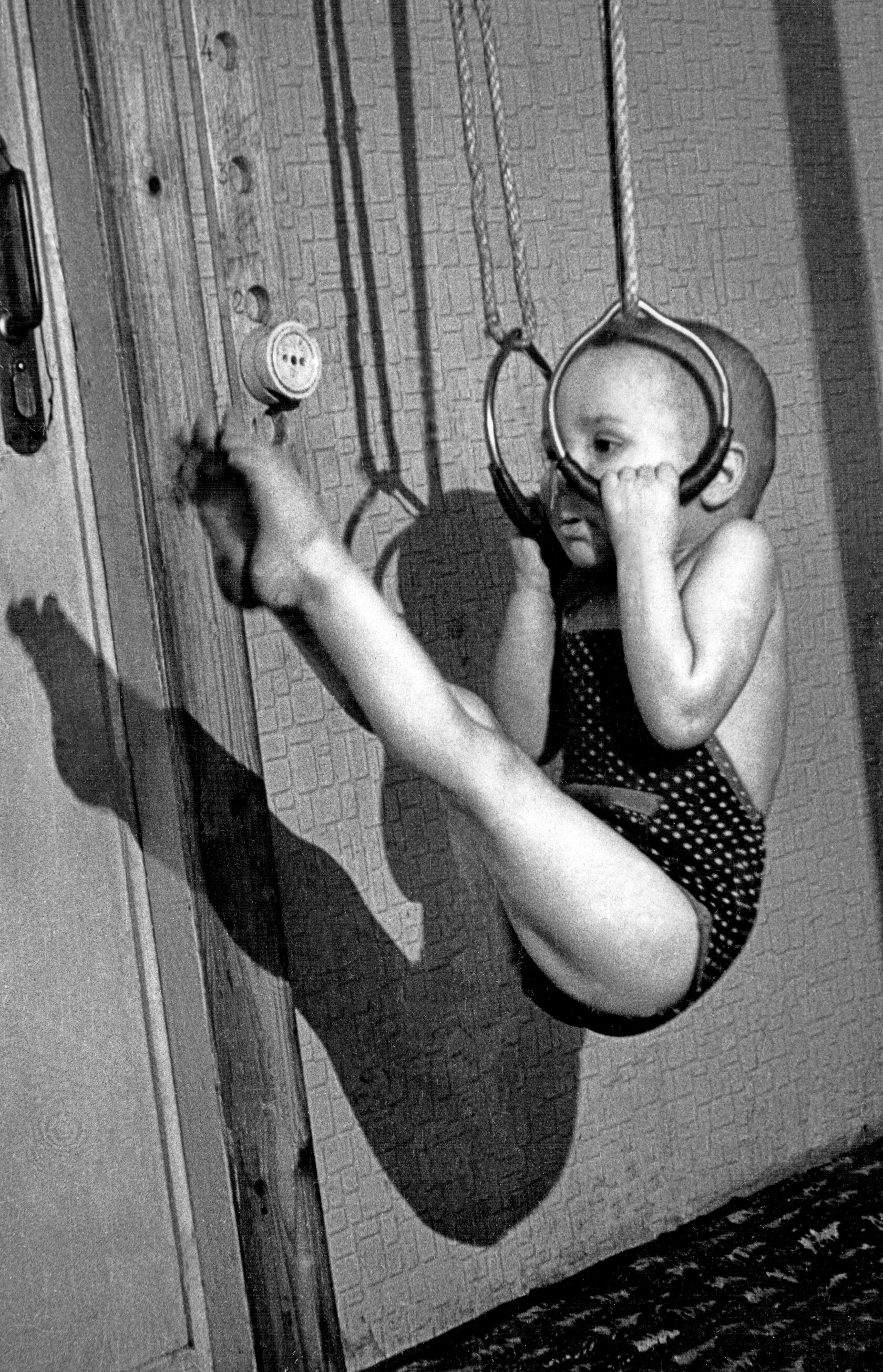 - Учат ребенка САМОМУ оценивать и рассчитывать свои силы! Устали ручки? — малыш САМ ставит ноги на пол и отпускается. Поэтому большая ошибка — «подвешивать» малыша на кольца и тем более раскачивать! Ребенок всему этому должен научиться САМ.