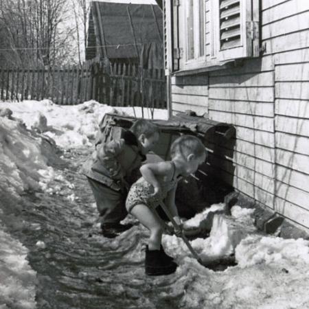 Когда мне было 6 лет, бабушка сделала нам с сестрой (5 лет) ведерочки из банок из под краски и мы вместе с ней таскали воду из колонки. Это была наша обязанность, и мы ее очень любили.